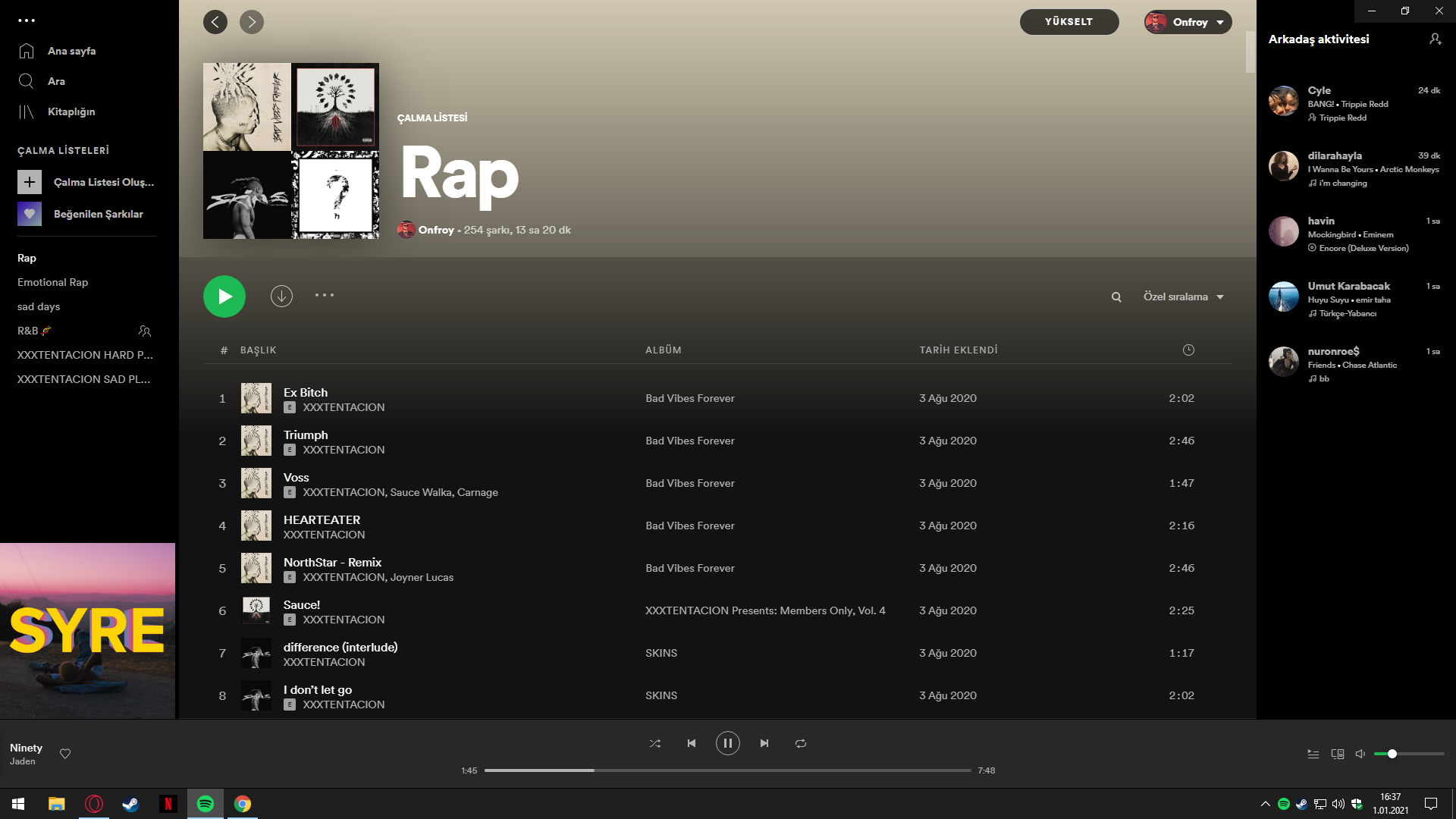 Selamlar. Halihazırda 2 adet Spotify hesabım var ancak birini kullanmıyorum. Geçenlerde gireyim dedim ve bir baktım ki bu hesaba girince arayüzüm değişiyor. Daha estetik oluyor. Ama şu an kullandığım hesaba geçince eski arayüze geri dönüyor. Sebebini veya çözümünü bilen var mı? (Üstteki fotoğraf yeni arayüz)