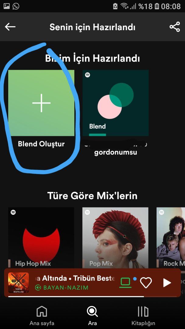 Uygulamaya giriyoruz, ara kısımına tıklıyoruz, orada senin için hazırlandı kısmı var oraya tıklıyoruz, girdiğimiz yerde Blend oluşturma kısmı var oradan oluşturuyoruz. Üstelik daha önce oluşturduğumuz blendleride görebiliriz.