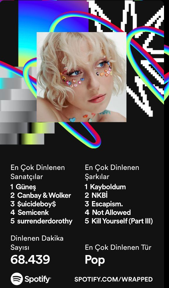 Yalnız benim anlamadığım en çok dinlenen şarkılar kısmında Velet çok yok ama en çok dinlediğim 5.kişi. Garip🤔