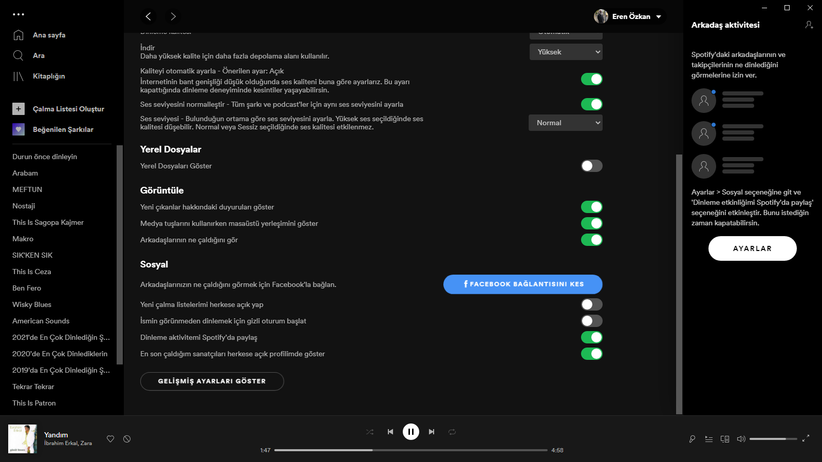 Dinleme aktivitemi Spotify da paylaş seçeneğide açık ama olmuyor.