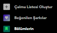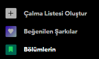 Bilmiyorum hocam zaten bölümler şeyini ilk defa duydum.''Çalma Listesi Oluştur'' ve ''Beğeniler Şarkılar'''ın altındaki ''Bölümlerin'' kısmından bahsediyorum