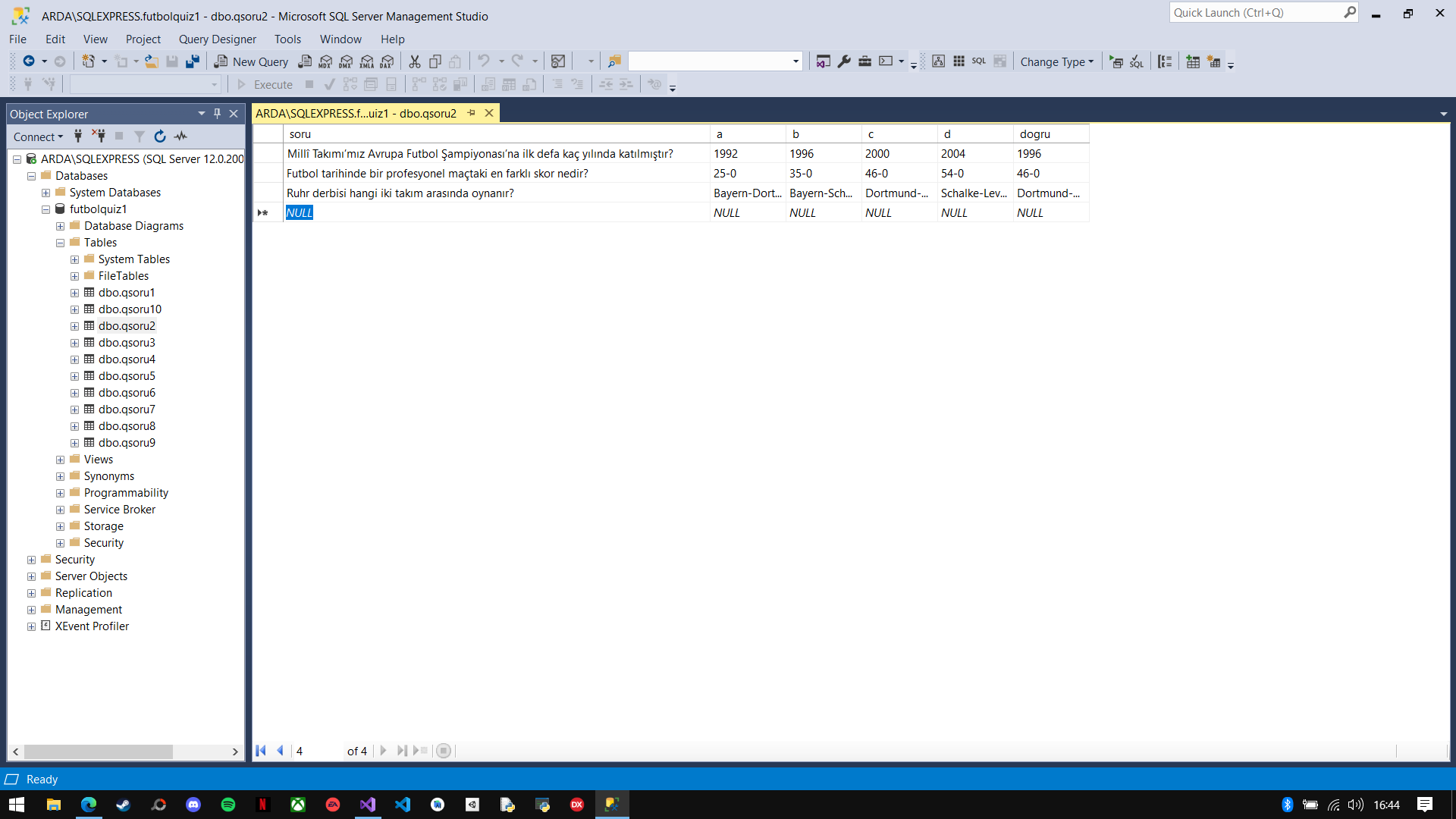 Bence her seviye için ayrı tablo oluşturmak gereksiz. Her tablo birbiri ile aynı. Bunun yerine tek tabloya level adında bir column ekle ve sorunun zorluk seviyesini burada ayarla. Bu konu hakkında daha detaylı öğrenmek istersen veritabanı normalizasyon olarak aratabilirsin.