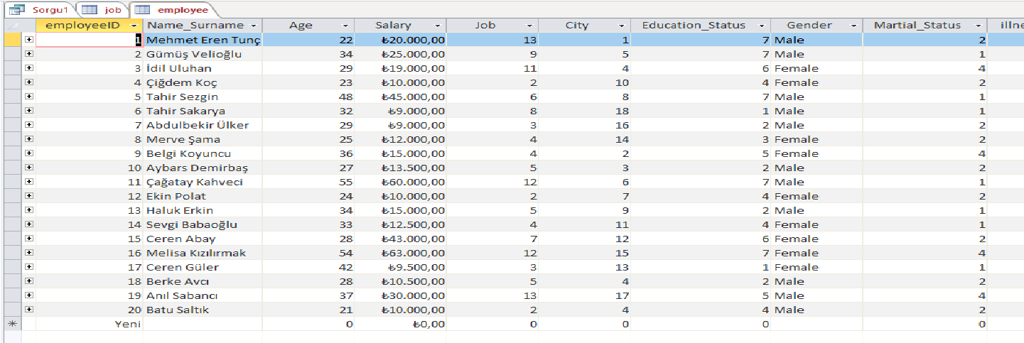 Foreign Key ile bağlaman gerekiyor. İster yeni bir tablo oluşturup 'Job' ve 'Employee' tablosunun Primary Keylerini oraya FK olarak atarsın ya da bu iki tablodan birinin PK'sını diğerine FK olarak atayabilirsin.