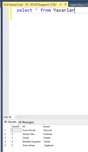 Ancak onlar yerine YazarId için yazarıddeki veriyi çekmesi lazım hepsi kayıtlı zaten.