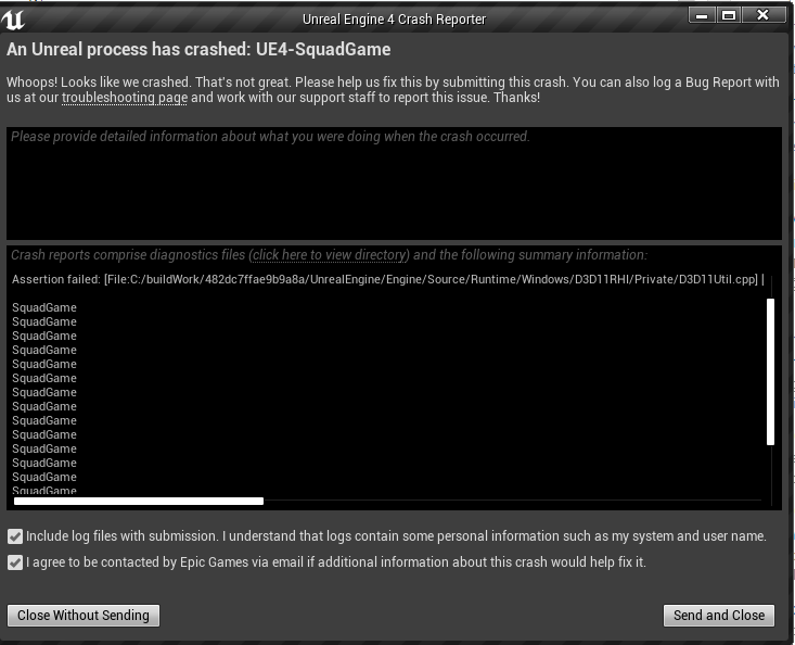 Assertion failed: [File:C:/buildWork/482dc7ffae9b9a8a/UnrealEngine/Engine/Source/Runtime/Windows/D3D11RHI/Private/D3D11Util.cpp] [Line: 249] Direct3DDevice->CreateUnorderedAccessView(Texture->GetResource(),&UAVDesc,(ID3D11UnorderedAccessView**)UnorderedAccessView.GetInitReference()) failed at C:/buildWork/482dc7ffae9b9a8a/UnrealEngine/Engine/Source/Runtime/Windows/D3D11RHI/Private/D3D11UAV.cpp:103 with error E_INVALIDARG.