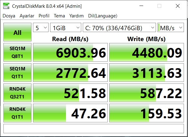 Laptola gelen SSD'nin hız değerleri böyle ama oyun okuması yaparken 550-600 MB ile yaptı ve teste göre bu düşük kalıyor gibi, bilen varsa yardımcı olabilir mi?