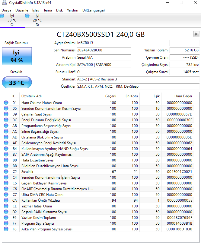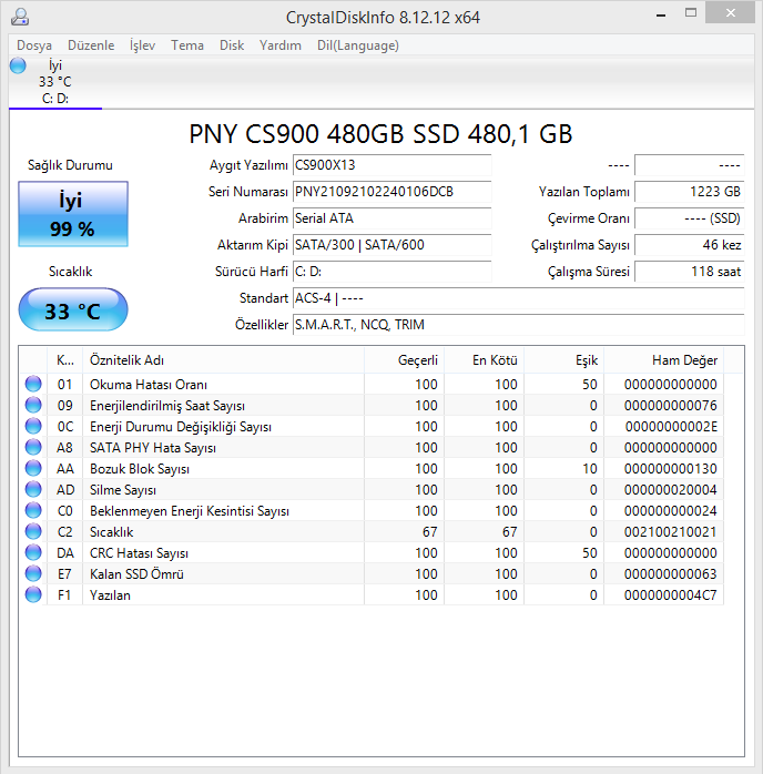 CrystalDiskInfo değerlerime baktım. Sizinkileri de merak ettim. Ben başlıyorum o zaman.