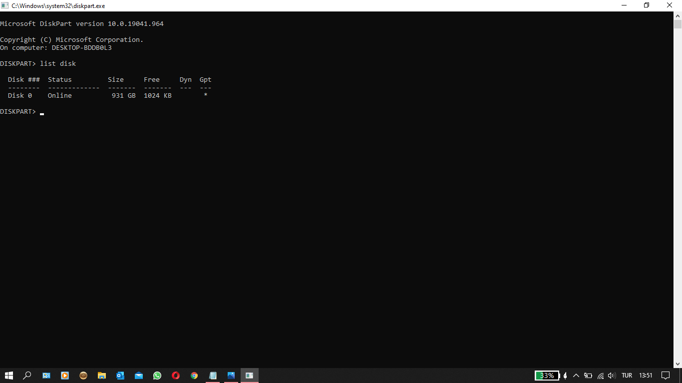 Bilinmeyen aygıt kaybolunca "diskpart" üzeriden "list disk" komutunu girdiğimde SSD buradan da gitmiş oluyor (Resim 6).