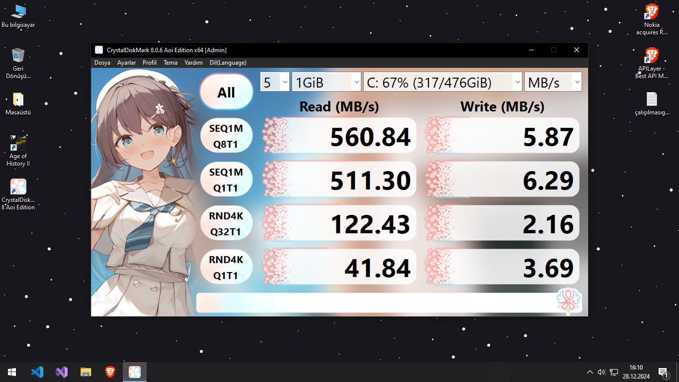 SSD'niz merdiven altı ürüne benziyor, büyük ihtimalle iç bileşenleride çok kalitesiz olduğu için binevi öldü. 5 mb/s yazma cidden ölü bir durum. Yeni bir SSD alsanız iyi olur bence. (Düzgün bir model.)Başlıkta da belirttiğim gibi SSD çok yavaş çalışıyor, yapılabilecek bir şey var mı? Şu anki değerleri bunlar: