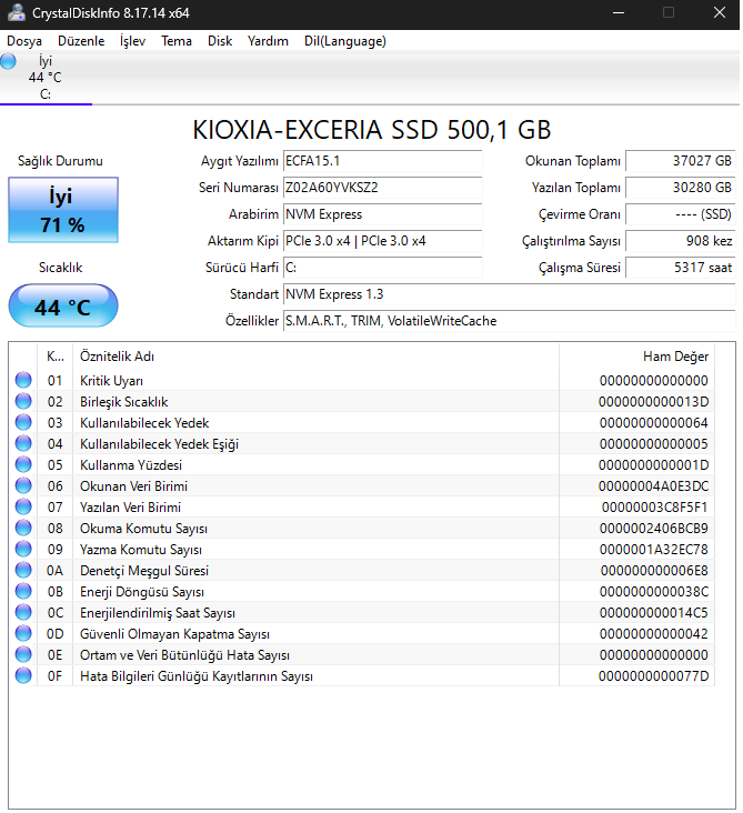 Arkadaşlar merhaba, çok fazla anladığım bir konu olmadığı için yardım almak istedim. Sağlık durumu %71 çok düşük gibi geldi. Neden kaynaklanıyor olabilir ya da normal mi? Ayrıca diğer değerler ve genel durum nasıl? Yaklaşık 2 yıldır kullanıyorum.
