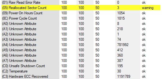 SSD'de 3 bozuk blok var. Ama blok değiştirme işlemi yok. Yanlış görmüşüm.