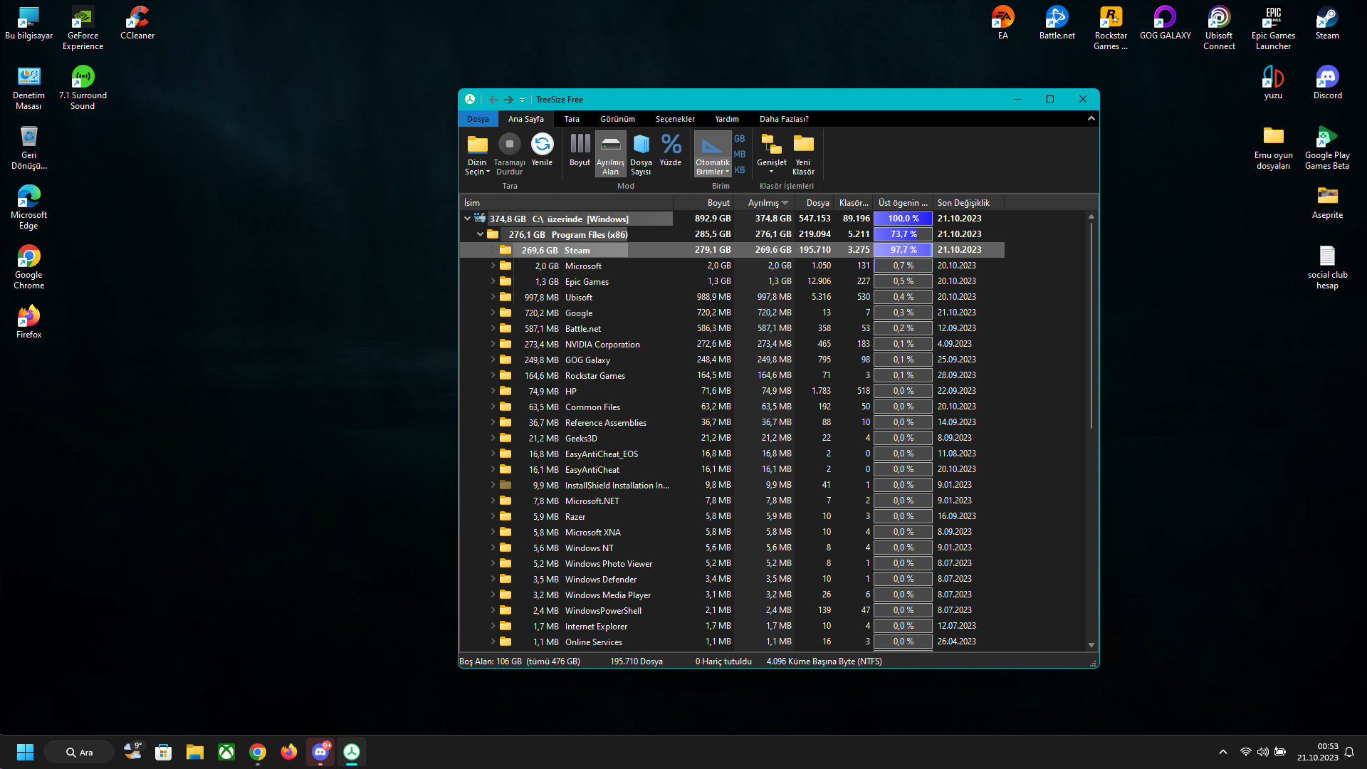 Bu şekilde hangi dosya yer kaplıyor görebilirsiniz.