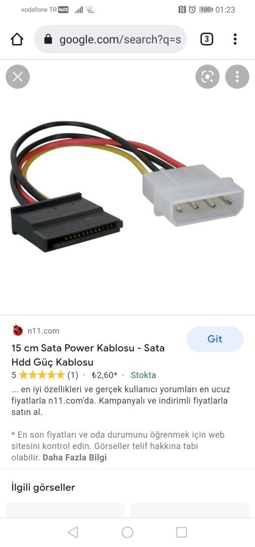 Bu ise SATA güç kablosu. Bu da aynı şekilde hem HDD için, hem SSD için uyumlu.