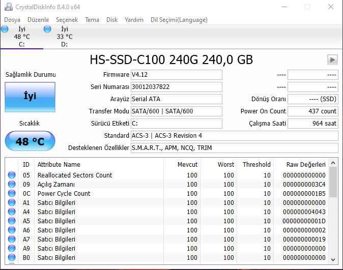 4 Aylık masaüstü sistemimin SSD sonuçları şu şekilde: