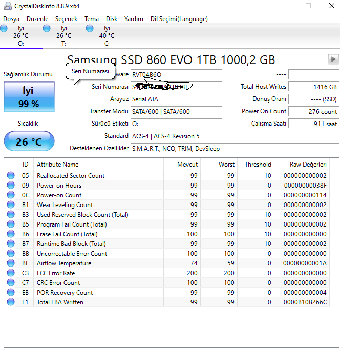 1. M.2 SSD A200 Kingston 2. 860 EVO 3. Toshiba SSD Sıcaklık durumları nasıl? Sağlık durumu düşmesi performansı etkiler mi?