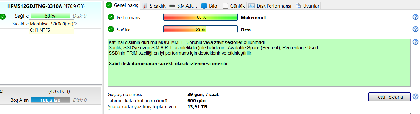 SSD sağlık testi sonuçları nasıl?