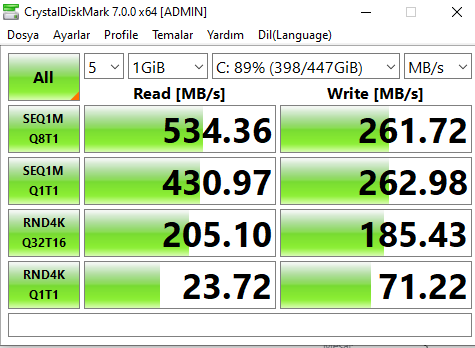 Merhabalar, direk konuya gireyim bilgisayar yavaş gibi geldi, Discord'da farklı sunucularda gezerken çok donuyor yavaş açılıyor. Genel olarak yavaş geliyor. Bu yüzden SSD kaynaklı olabileceğini düşündüm. İnternetten çözüm aradım, BIOS'dan baktım SSD modu achi'idi. Benchmark testi yaptım fotoğrafını koyuyorum sizce değerler normal mi? (RAM 16 GB)