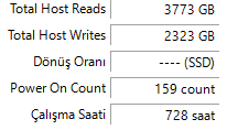 Arkadaşıma ikinci el SSD alacağız. Her şeyini kontrol ettim ve bir problem göremedim fakat şöyle bir şey var. SSD toplamda 700 saat civarı, yani 29-30 gün çalışmış. Fakat Power on count, yani toplam çalışma durma sayısı 400. Bu sayı birazcık fazla geldi bana. Çok fazla çalışıp durması bir sorun teşkil eder mi sizce? Sizin uzun süredir kullandığınız SSD’lerin Power on count’ı kaç? CrystalDiskInfo’dan bakıp söyleyebilir misiniz?