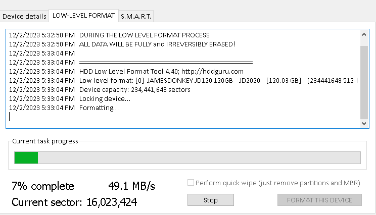 Gigabyte'ın SSD tool Box'unda Secure Erase seçeneği var.