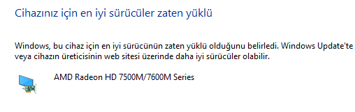 Hocam sürücüyü güncelleştir dedim sürücünüz zaten güncel dedi.