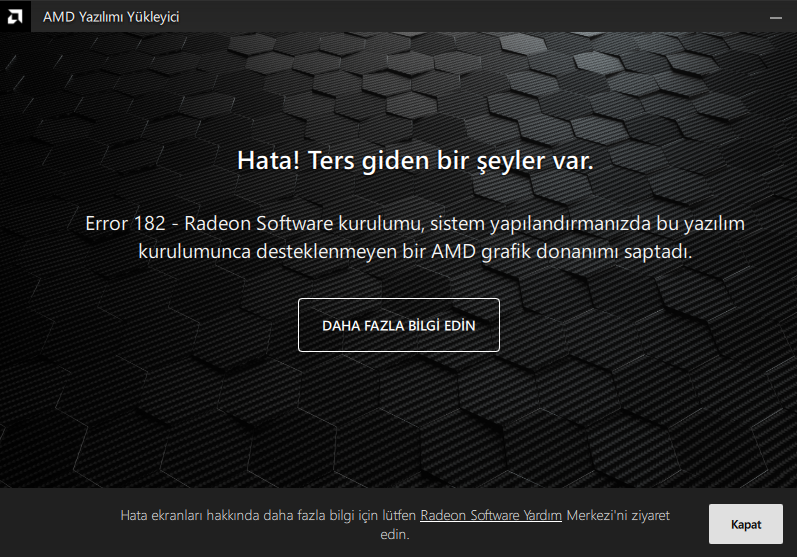 Hadi tamam ben sizin için Google Translate görevi göreyim. Yani arkadaş diyor ki "Lütfen AMD Radeon Sürücünüzü güncelleyin".