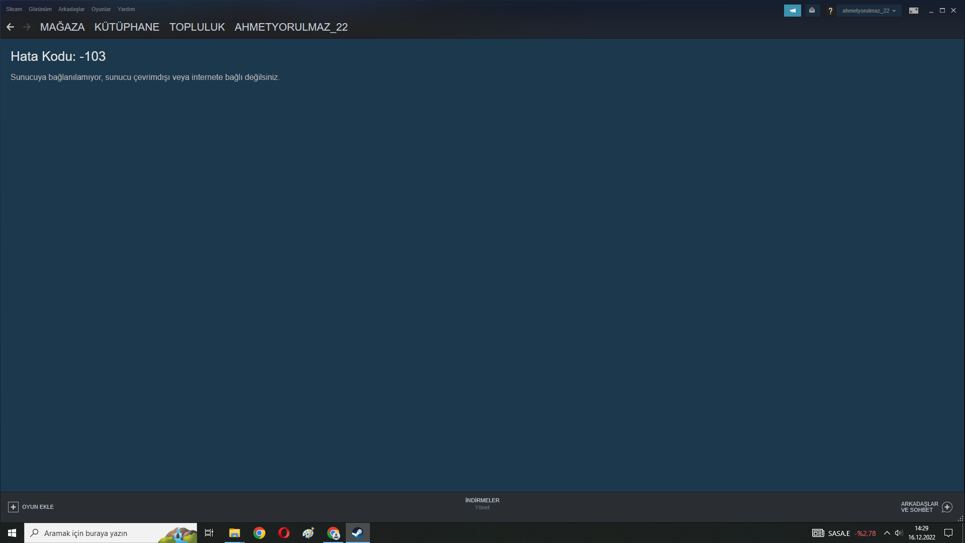 Arkadaşlar yaklaşık 1 aydır Steam uygulamasından ne bir oyun indirebiliyorum ne de güncelleme yapabiliyorum. Steam sildim ve tekrar yükleyeyim dedim. Diyor ki = Steam güncelleme için çevrimiçi olmalıdır. Lutfen ağ bağlantınızı doğrulayın ve yeniden deneyin. İnternetim ile her yere giriş yapılıyor. Epic Games ile oyun indirmek ya da herhangi bir şey yapılıyor. Sadece Steam'de sorun yaşıyorum. Yardımlarınızı bekliyorum.