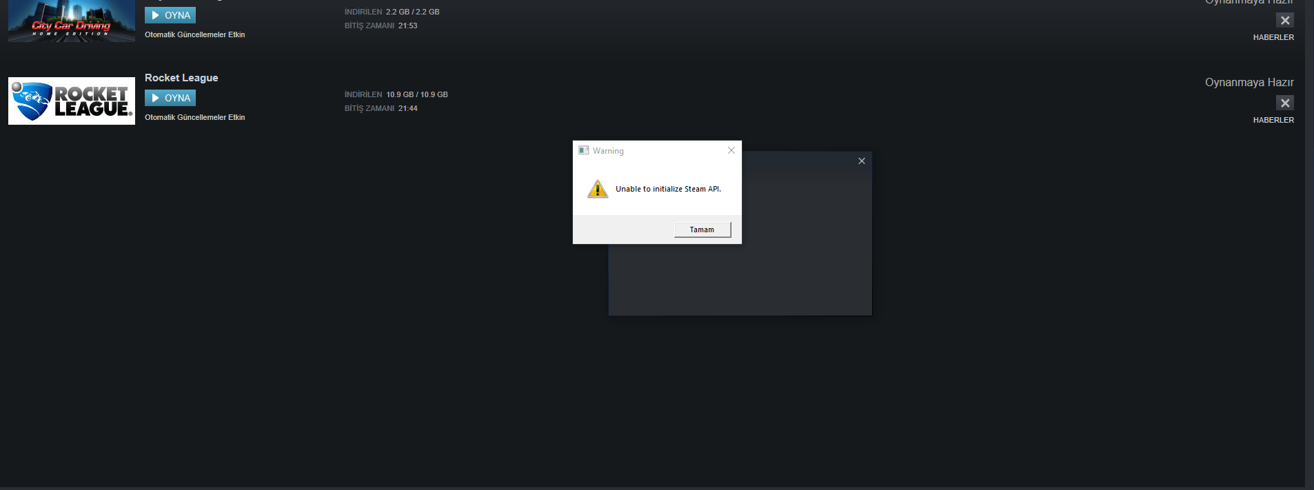 Steam'dan orijinal aldığım herhangi bir oyuınu oyna dediğim zaman aşağıdaki gibi "unable to initialize Steam API" diye bir hata çıkıyor ve açmıyor oyunları. Oyunu silip kurdum dosya doğrulama yaptım, yine aynı. Ne yapmam gerek? Nasıl düzelir?
