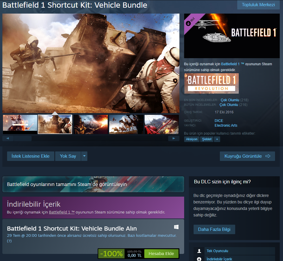 Ama Steam üzerinden ücretsiz olan DLC'yi almaya çalıştığımda böyle bir uyarı veriyor. 2 gündür alamıyorum. Nedeni nedir?