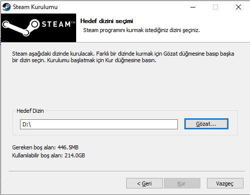 D diski kullanılabilir mi? Format attıysanız şayet disk yönetiminden açmanız gerekiyor diye biliyorum. Eğer öyle bir şey değilse D diskinin içine bir klasör açıp onun içine kurmayı deneyin. Oda olmazsa C diskine kurun sonra D diskini Steam kütüphanesi olarak ekleyin. Oyun kurulumlarını tekrardan D diskine yapabilirsiniz bu yöntemle.