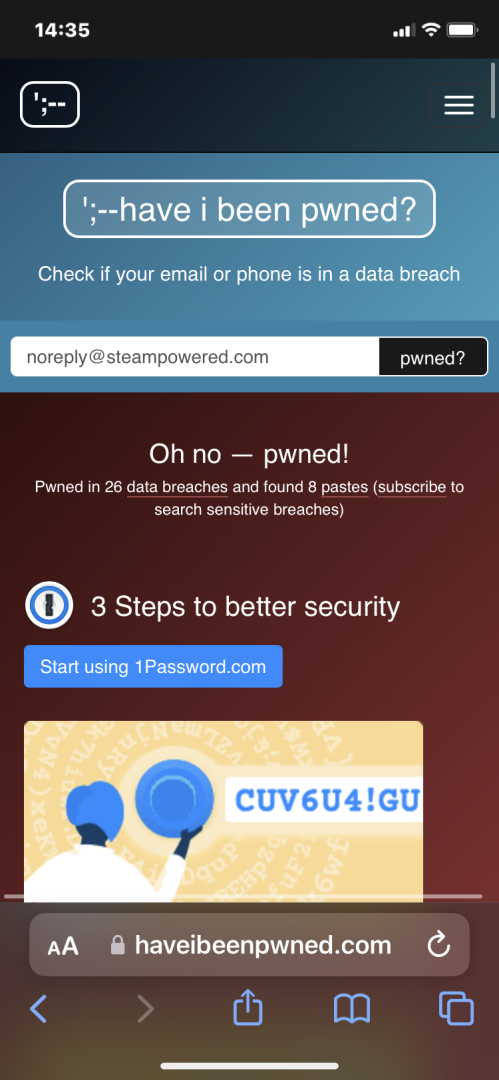 Hocam yani güvenli midir? Howbeenpwned güvensiz diyor.