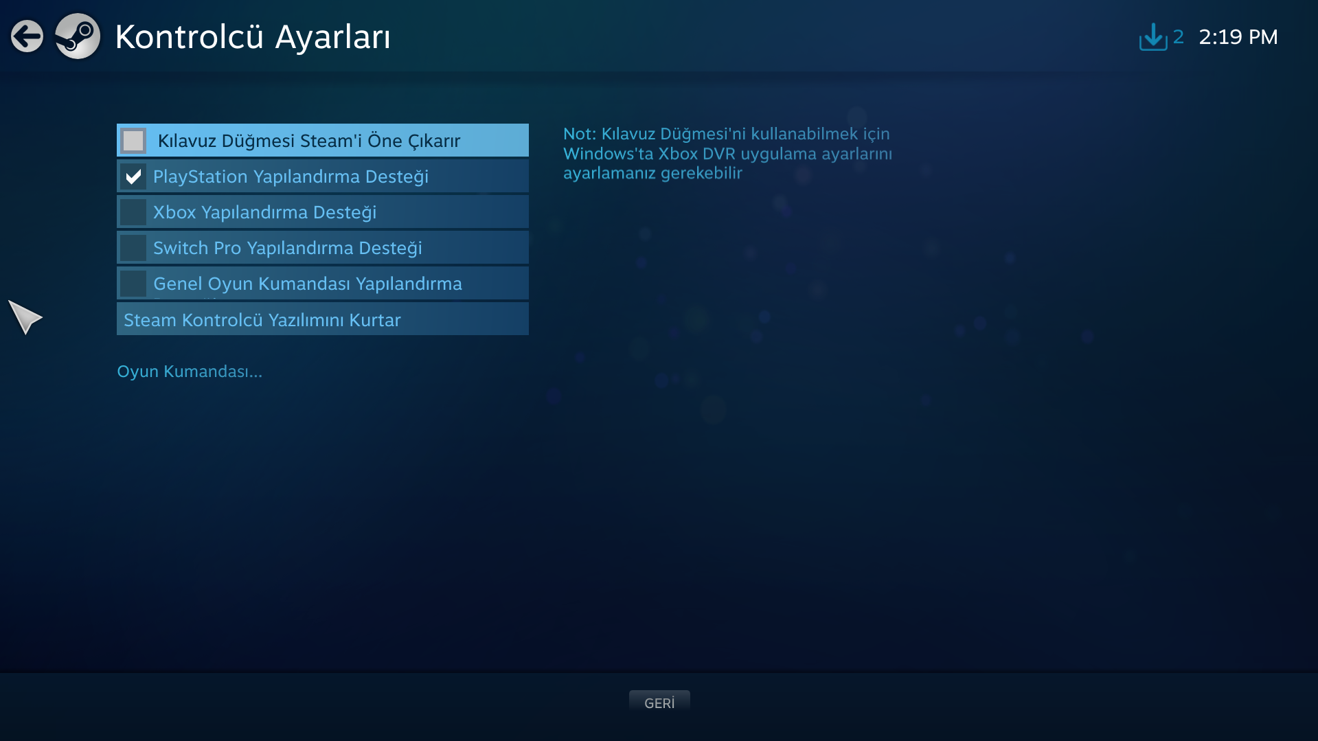 Hocam attığınız ekranda PS yapılandırma desteğinin altında Xbox yapılandırma desteği var onu açın olmazsa diğer anlattıklarımı deneyin.Xbox yapılandırma desteğinin nasıl açabilirim?