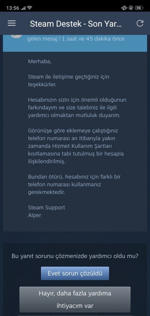 Steam Guard'ı telefonuma bağlamak istiyorum. Ama "bu telefon numarası kullanım şartları ihlali ile ilişkilendirilmiş" hatası alıyorum çözümü nedir?