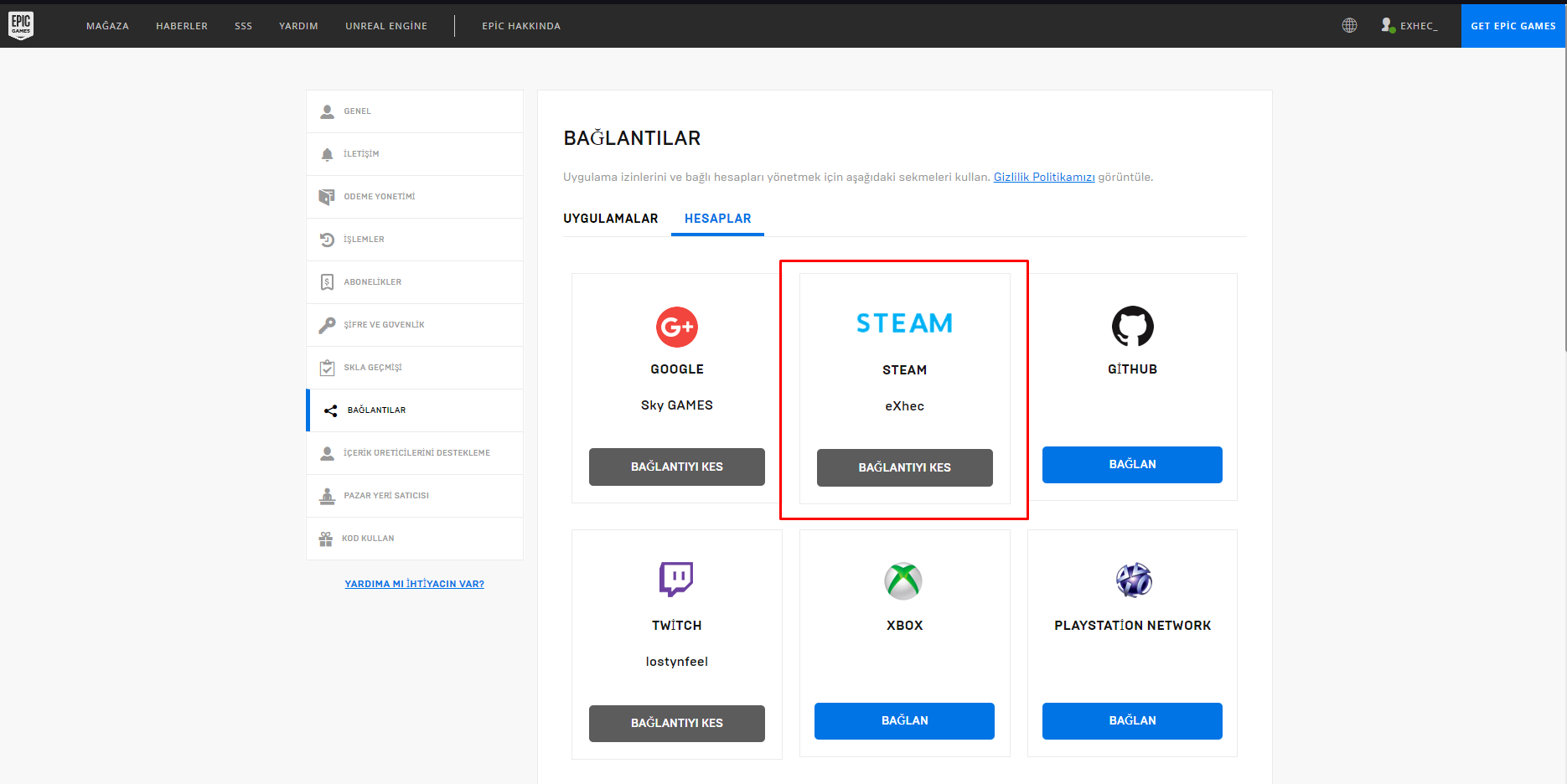 Bir de Steam hesabım ile Epic'te bağlıymış bunu kanıt olarak gösteremiyor muyum? Onun dışında Discord da bağlantılı Discord profilimden tıklayınca direk o hesaba gidiyor.