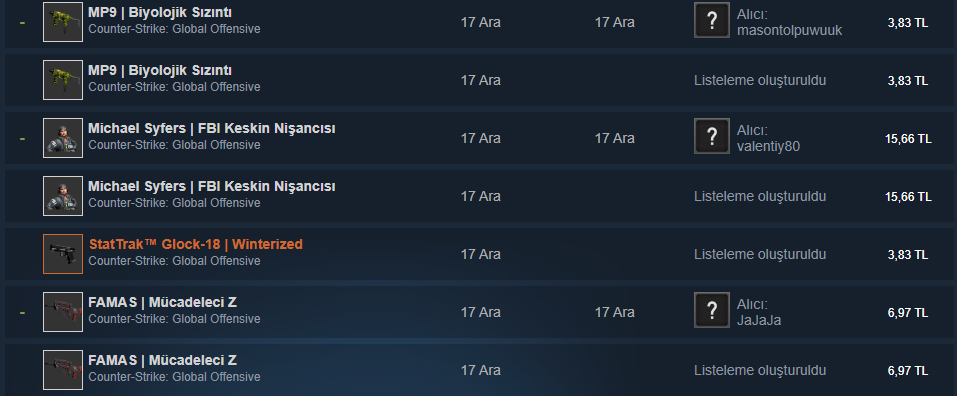 Adam hesaba girmiş CS:GO'da bütün skinleri satmış kafasına göre kendisine DotA2'den 10 kuruşluk eşyayı 30 TL'den benim hesaptan satmış. Steam Guard var hani ben bile pazara bir şey satmak için koyarken onay isteniyor nasıl yapabilir aklım almıyor.