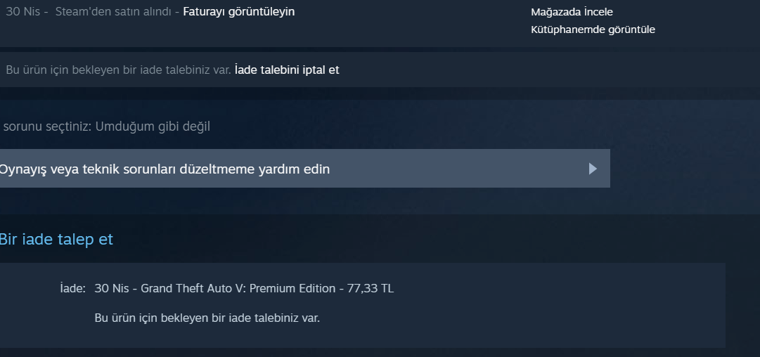 Merbahalar. 30 Nisanda GTA V indirime girmişti 77,33 TL bende Papara kartımı kullanarak satın aldım 30 dakika bazında oyunu oynadım oynamadım sonra sıkıldım ve oyunu iade etmek istedim. İade işlemini başlattım 2 gün şu an 2. ayın 5'i oldu ama karta param hala gelmedi acaba nedendir? Yardımcı olacak var mı?