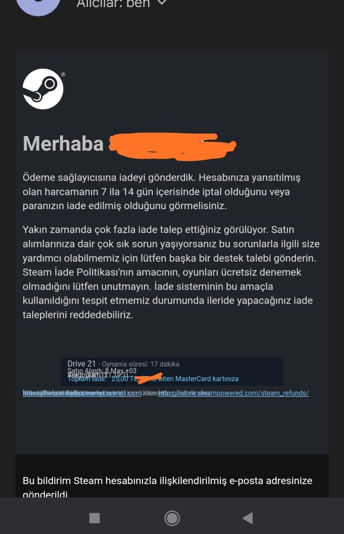 Ben zamanında 13. cuma oyununu iade etmiştim mailden sonra param kartıma 1 hafta sonra geldi.