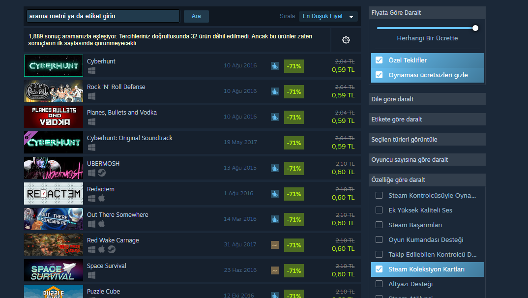 Ayarları böyle yapıp 1 TL'ye kadar olan bütün oyunları aldım şu an 150 TL kaarım bulunuyor 7 gün banım oldugundan satamıyorum bekliyorum.