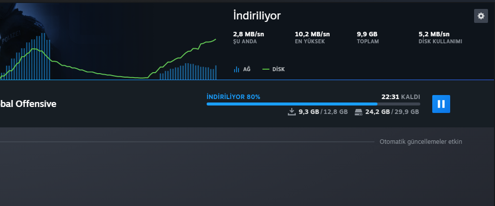 Ayrıca steam indirme hızı sınırlanabiliyor. Onu kontrol et.