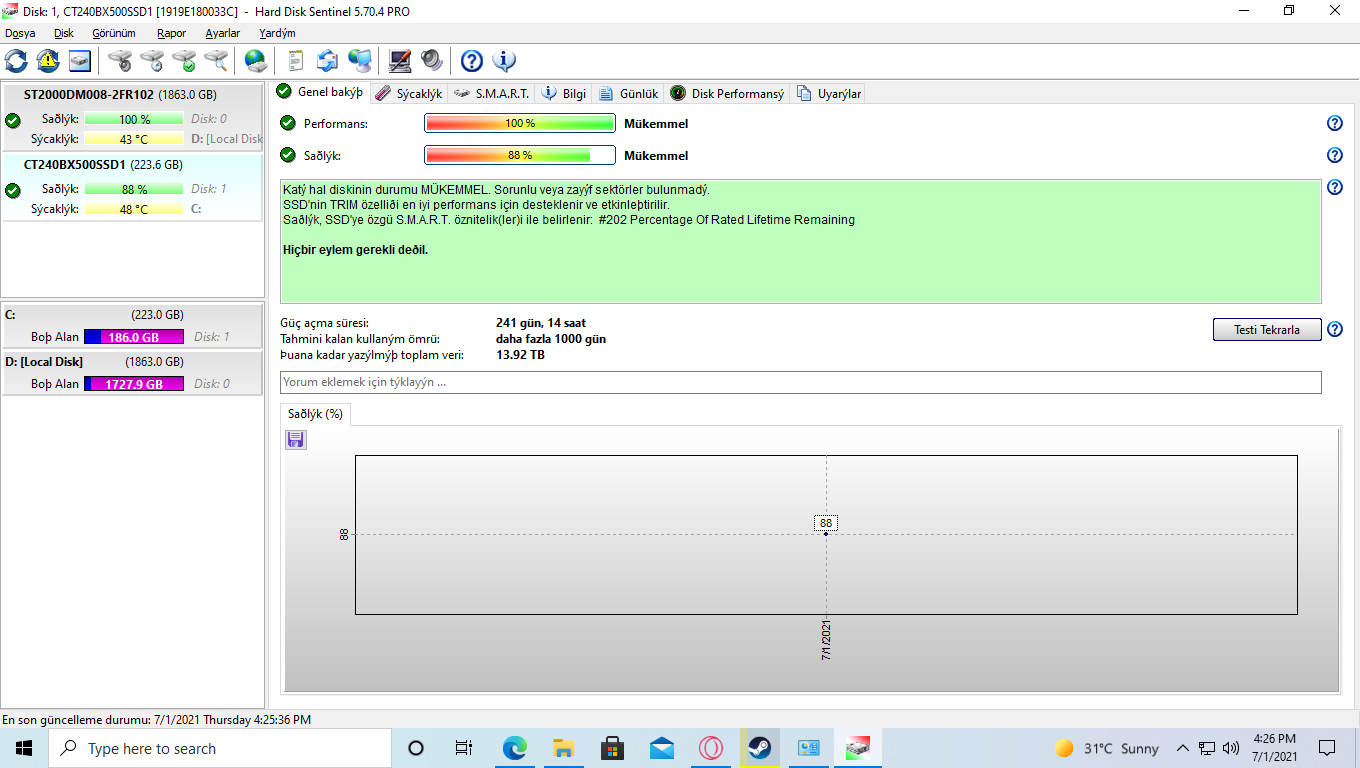 Hard Disk Sentinel HDD ve SSD.