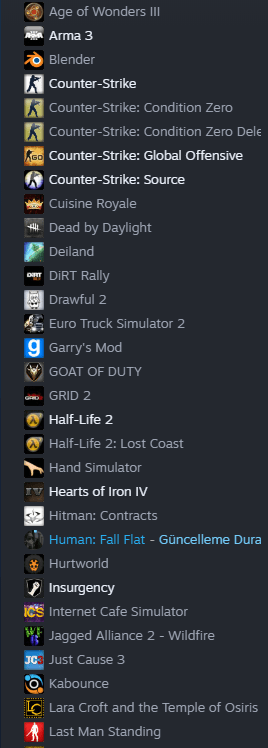 Evde değilim ama oyunlarım az zaten.