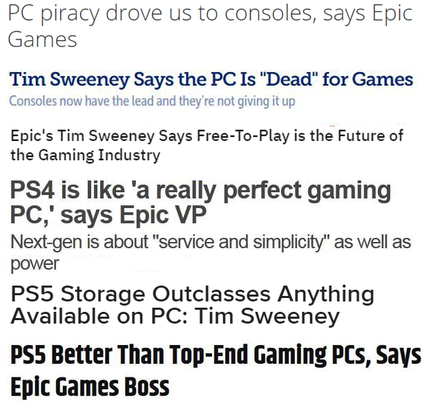 PC için oyunculuk bu kadar büyümeden önce de Epik'in ilk konsola, sonra da PC'ye port ettikleri oyunların o rezil portları bile PC oyunculuğunu saygıları olmadığını gösterir.