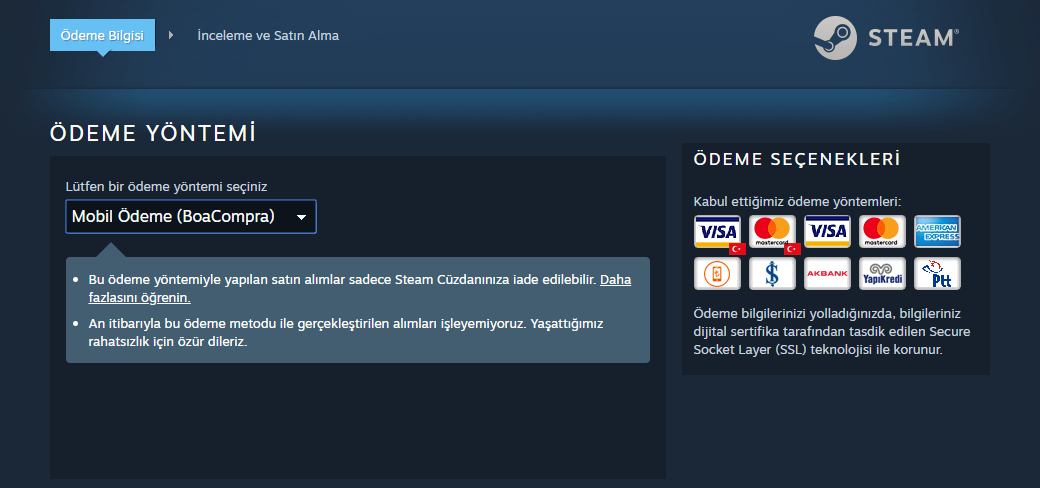 Şuandada hala aynı sorun var hani orada resimde Steam cüzdana iade edilir vs falan diyorya ben Steam cüzdan kodu alırken de bu hatayla karşılaşıyorum
