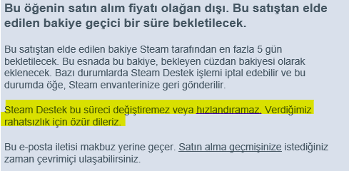 İtemlerimi(envanter eşyalarımı) satıp indirimli oyun almak istiyorum fakat Steam her seferinde paramı beklemeye atıyor. 1 lira da olsa 30 lira da olsa beklemeye düşüyor ne yapmam lazım?