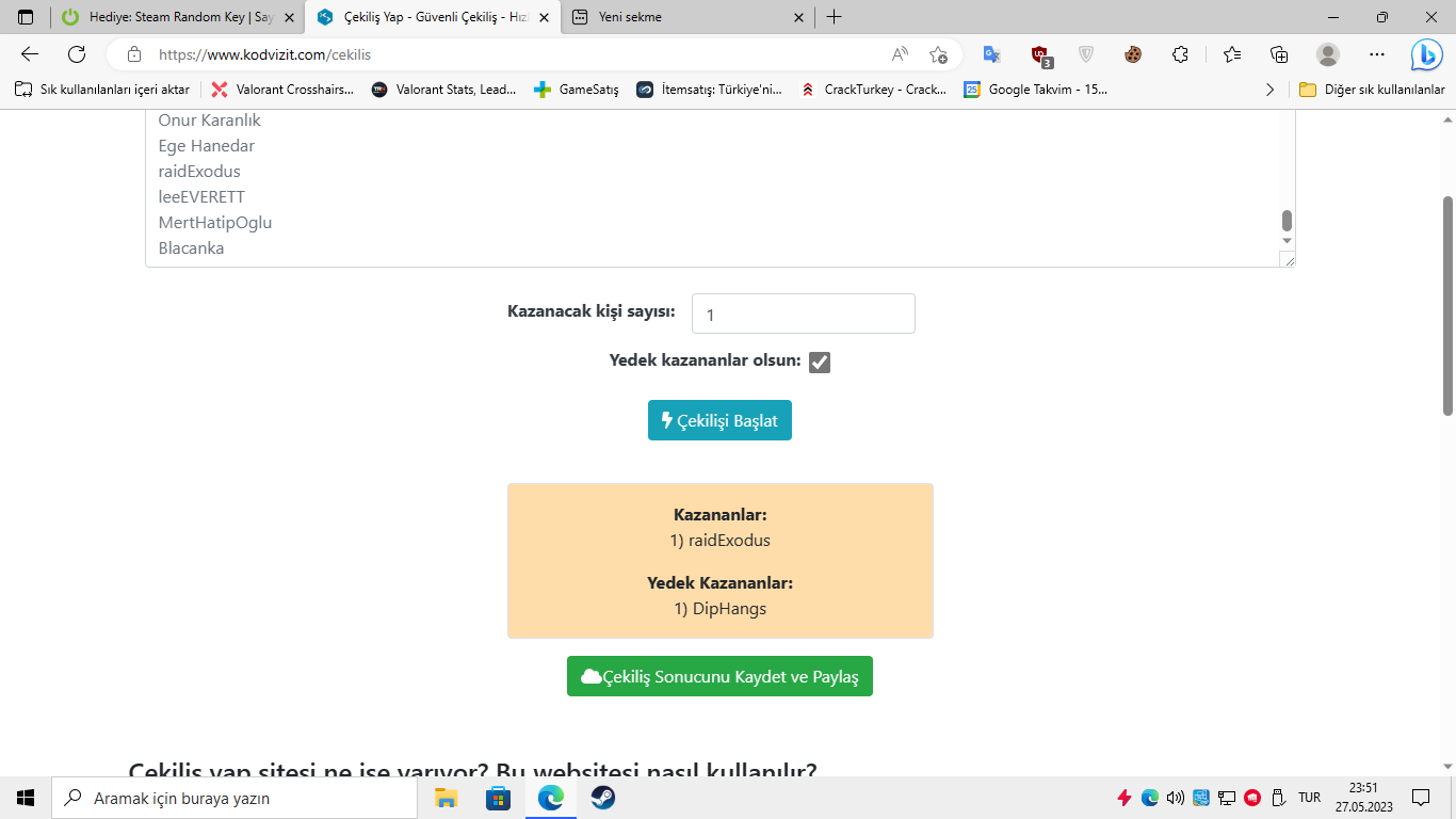 Evet çekiliş anlık olarak bitmiş durumda kazanan arkadaş bana Discord üzerinden ulaşabilir. Bana Discord etiketini yazmasını rica ediyorum.