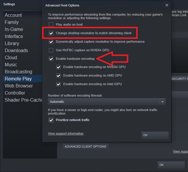 Steam ayarları > remote play > gelişmiş istemci ayarları > "donanım kod çözmeyi etkinleştir" seçeneğinden tik işaretini kaldırıp tekrar deneyin.