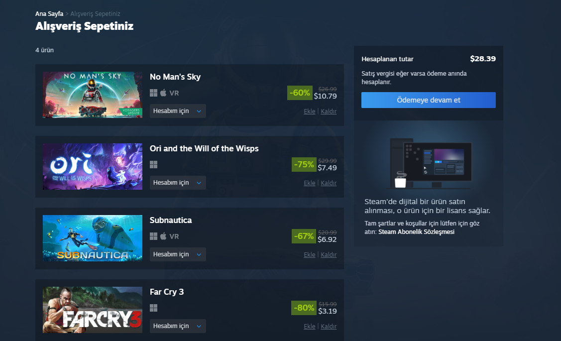 Steam sepeti nasıldır?