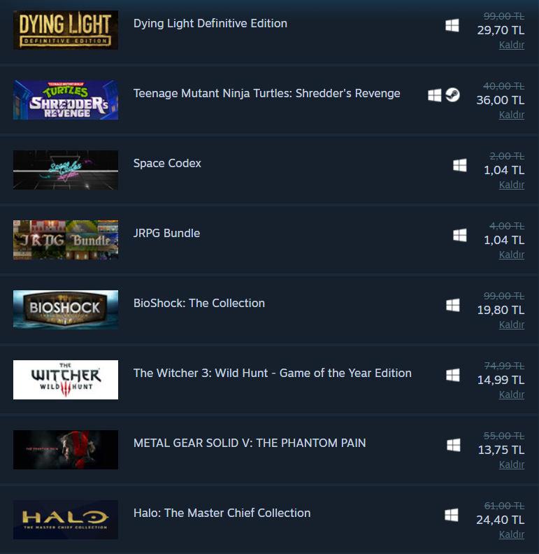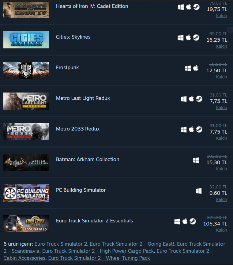 Steam alışveriş sepetim şu şekilde. Sizce değişiklik yapmam gereken şeyler var mı?