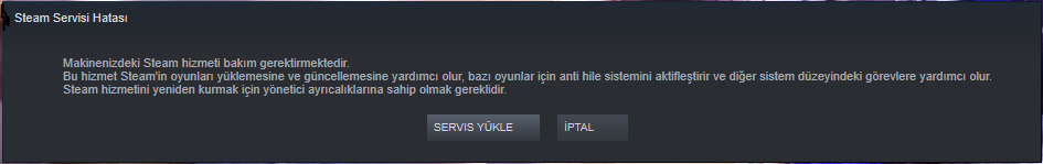 Sabah Steam'i açınca böyle bir hata verdi, servis yükle deyince de yanıt vermiyor dedi.