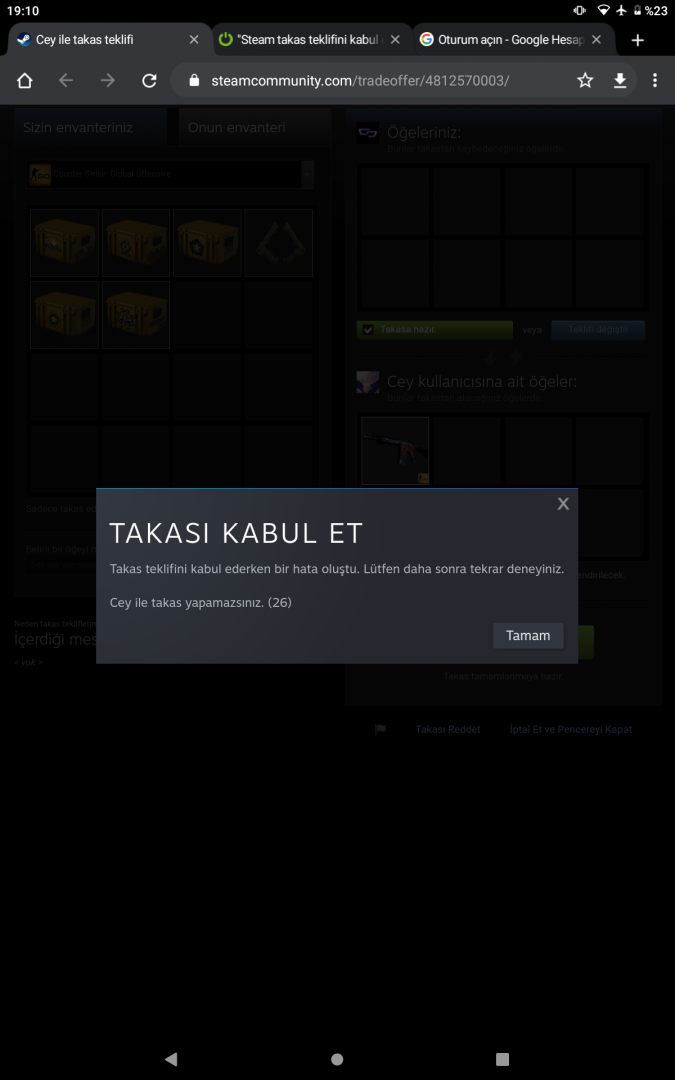 "Steam takas teklifini kabul ederken bir hata oluştu." hatası