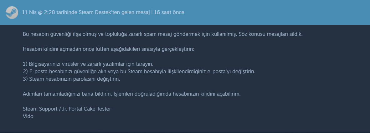 Spam'den dolayı yemişim cezayı fakat topluluk mesajları geçmişime baktığımda sadece kendi kullandığım steam hesabımda saçma sapan yazılar olduğunu gördüm, Çince yazılar bile vardı, yani spami kendim yapmadım. Neticede 2038 yılına kadar uzaklaştırma aldım.Çok şaşkınım cidden merak ediyorum acaba neden yediniz bu cezaları.